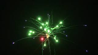 | Silver Strobe with Purple Dahlia and Green TailSilberne Blinksterne kombiniert mit Dahliensternen in Purple sowie Schweifaufstieg in Grün. | 25 | 30s | 45mm |   Link |
